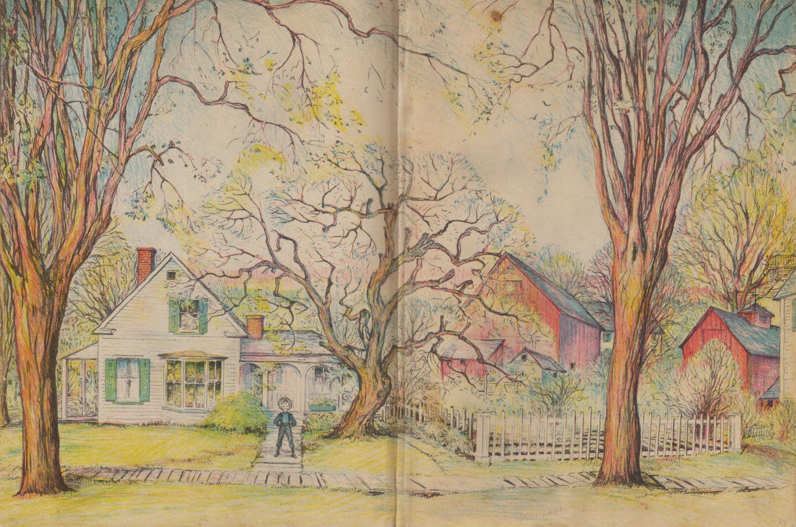 the barns and stables in backyards, the hamlet glowing in de Angeli’s prismatic